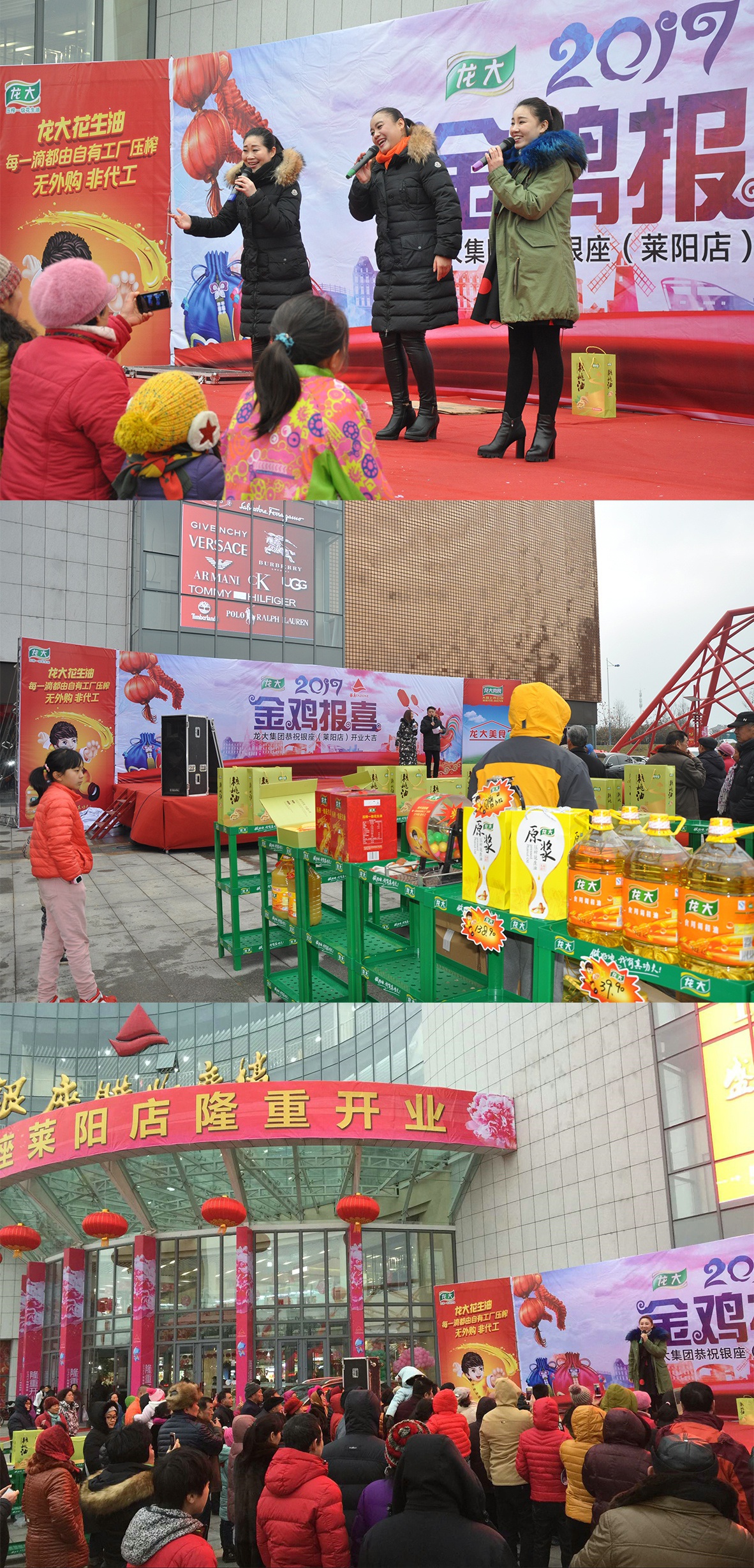 1月7日—9日,银座莱阳店门前广场喜气洋洋。九色视频 组织旗下植物油、肉食品两大内贸产品进行为期3天的路演,为银座莱阳店开业助力。