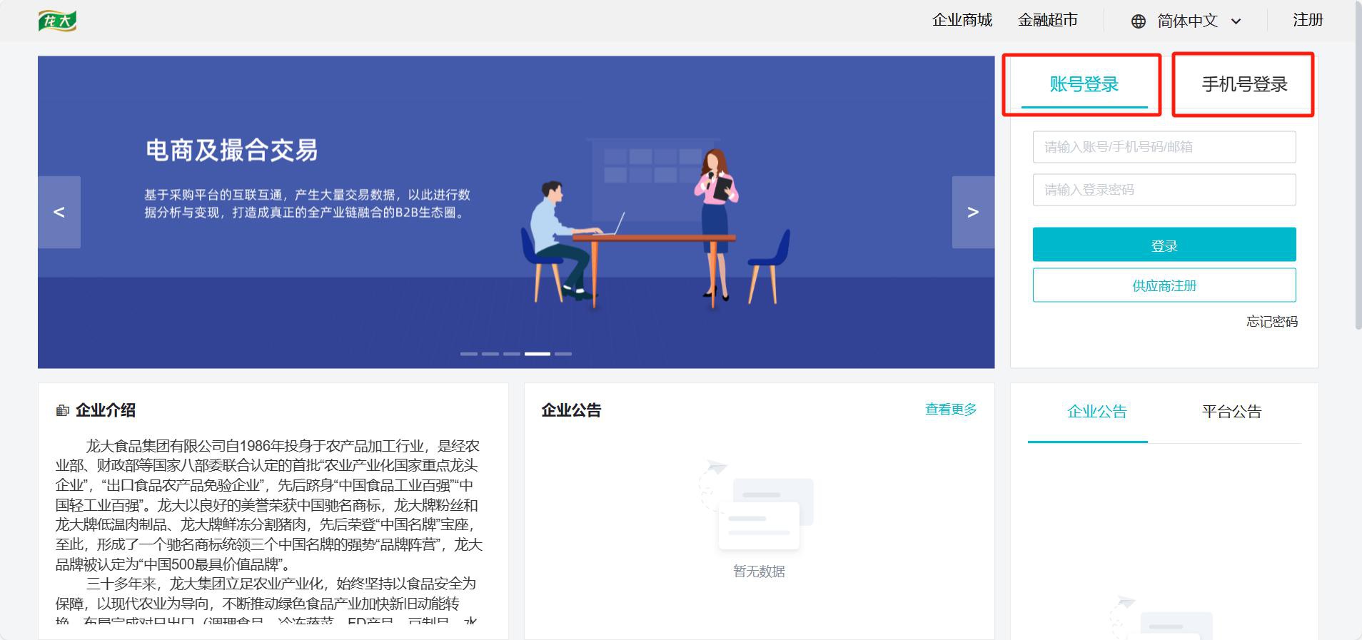 2、注册成功后,按下图所示登录系统,进行企业认证。