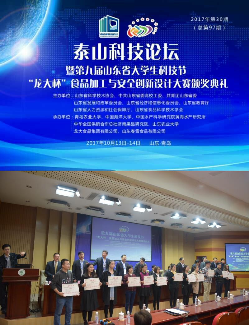 10月14日,泰山科技论坛暨第九届山东省大学生科技节“龙大杯”食品加工与安全创新设计大赛颁奖典礼在青岛农业大学举行。九色视频 参与承办此次活动,旨在激励大学生的创新创业意识,发掘、培养应用型人才,并为他们提供创新创业平台。